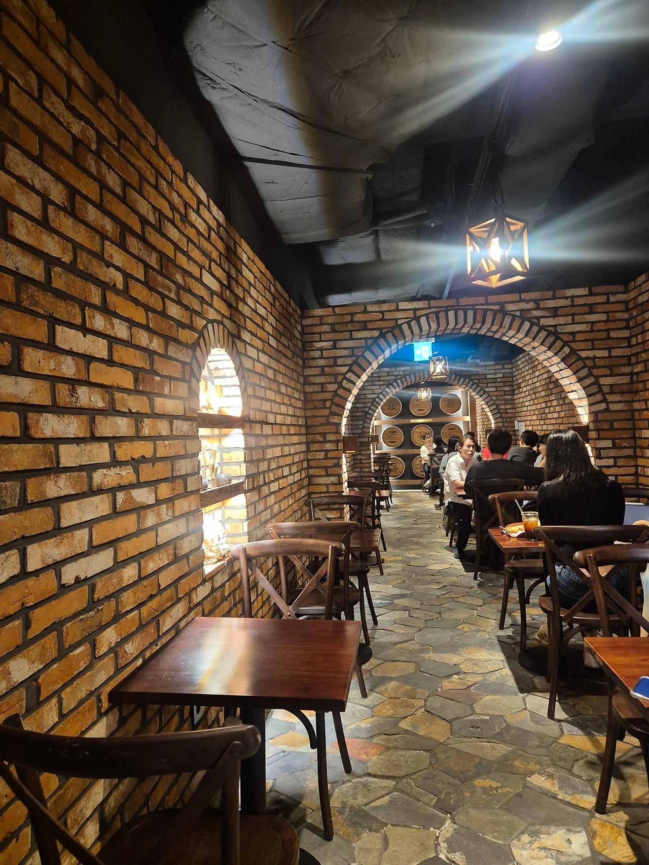 이 카페의 벽돌 인테리어는 고급스럽고 아늑한 느낌을 주어,