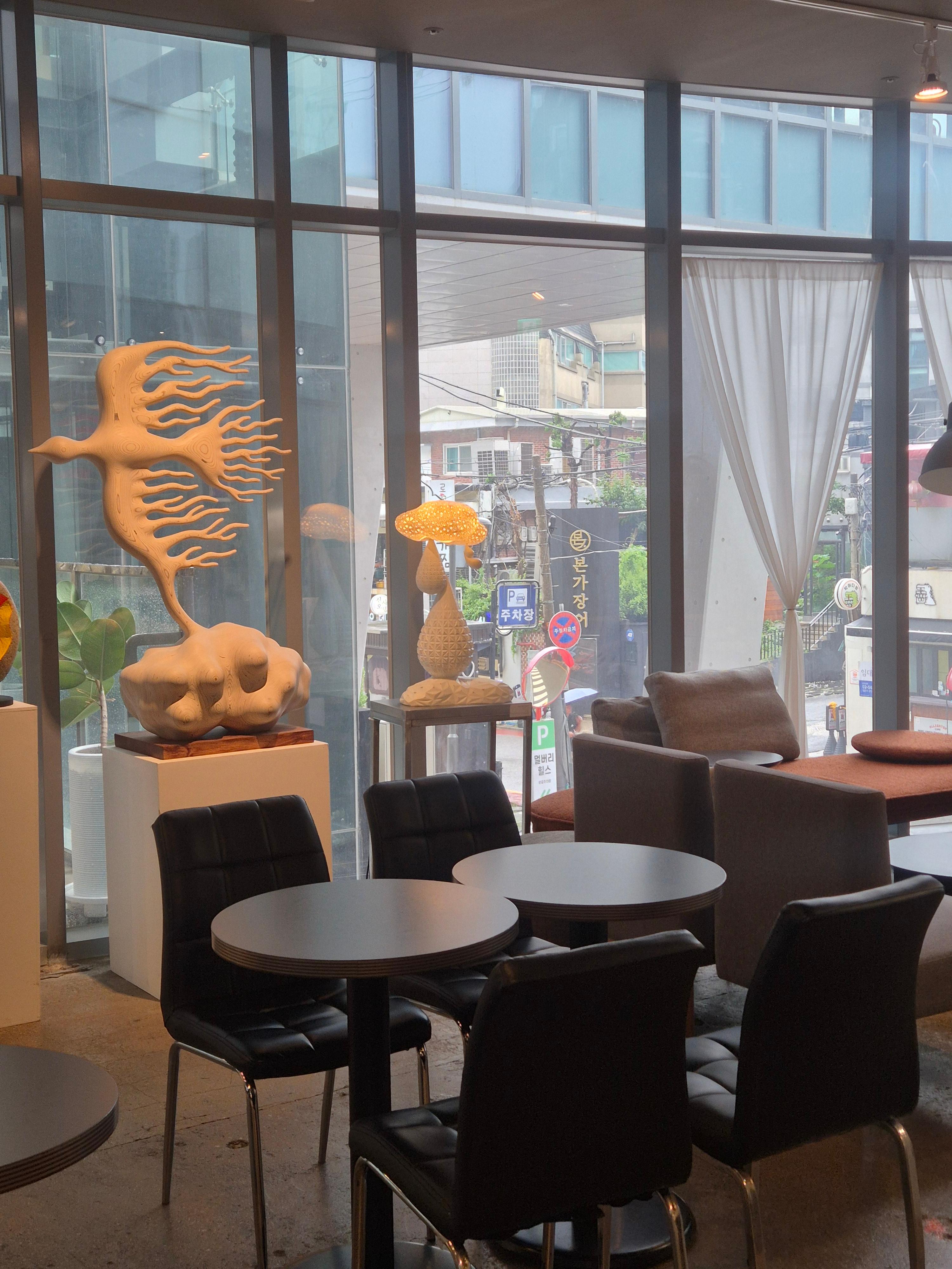 작품 옆에 배치된 테이블 덕분에, 커피 한 잔을 즐기면서 자연스럽게 감상할 수 있죠.