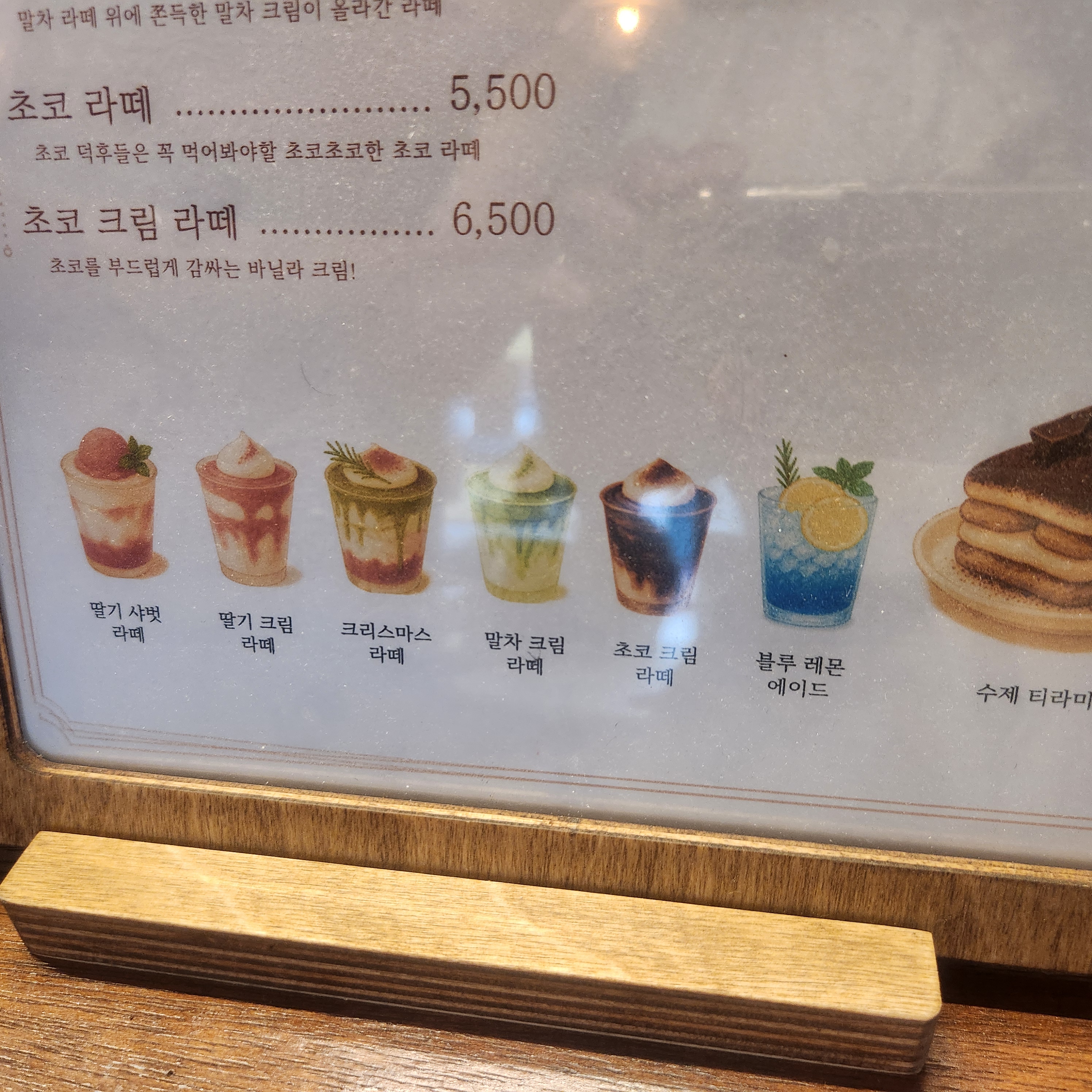 음료 중에서는 크림라떼가 단연 베스트였고, 딸기라떼와 크리스마스라떼도 특별했어요.