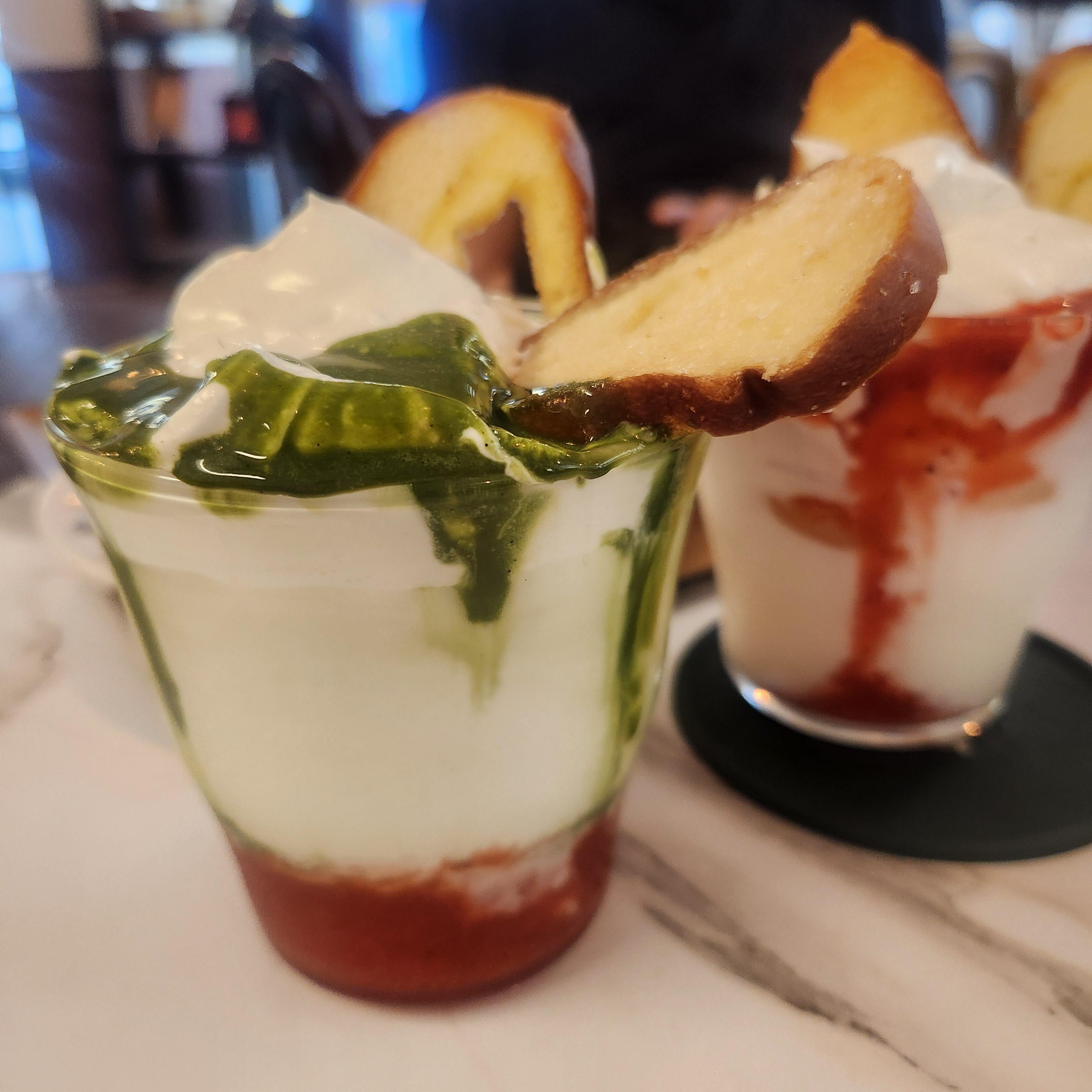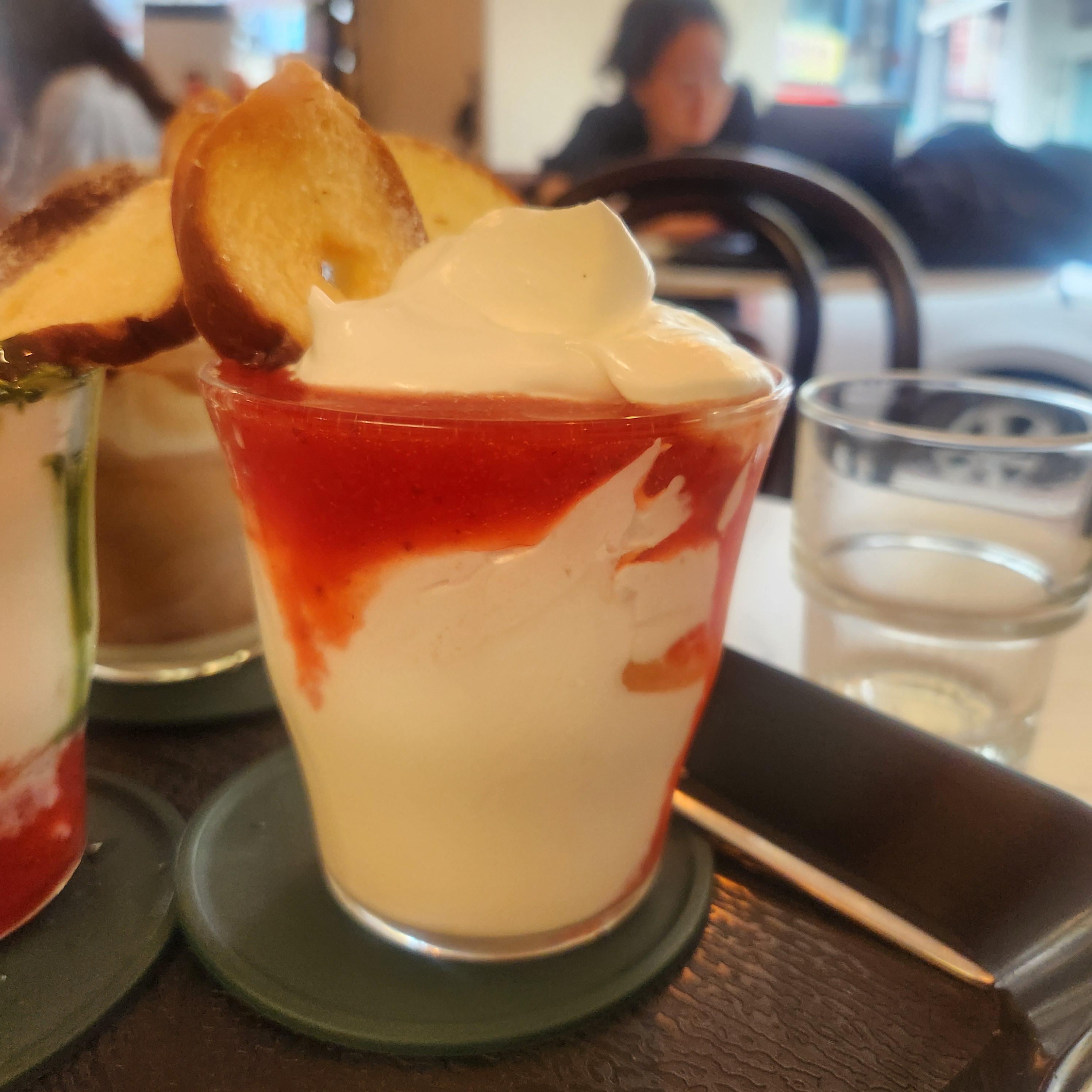 초록색 말차와 빨간 딸기 색감이 너무 예뻤어요.