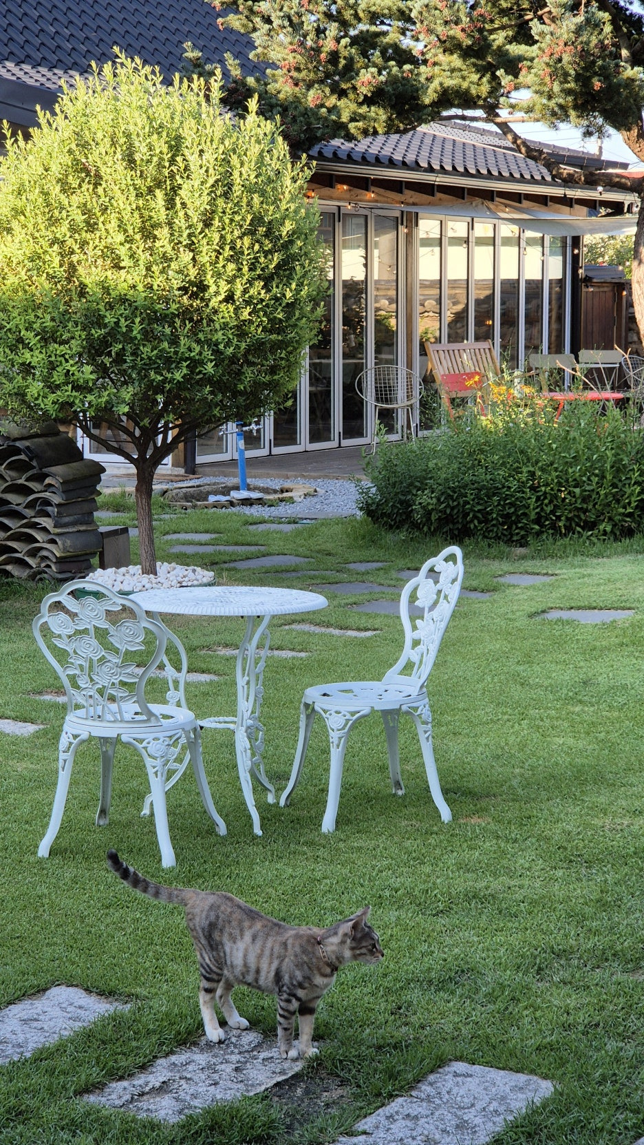 카페 마당을 돌아다니던 고양이가 손님들을 반겨주는데, 그 느긋한 모습만 봐도 마음이 힐링되는 기분이었답니다.